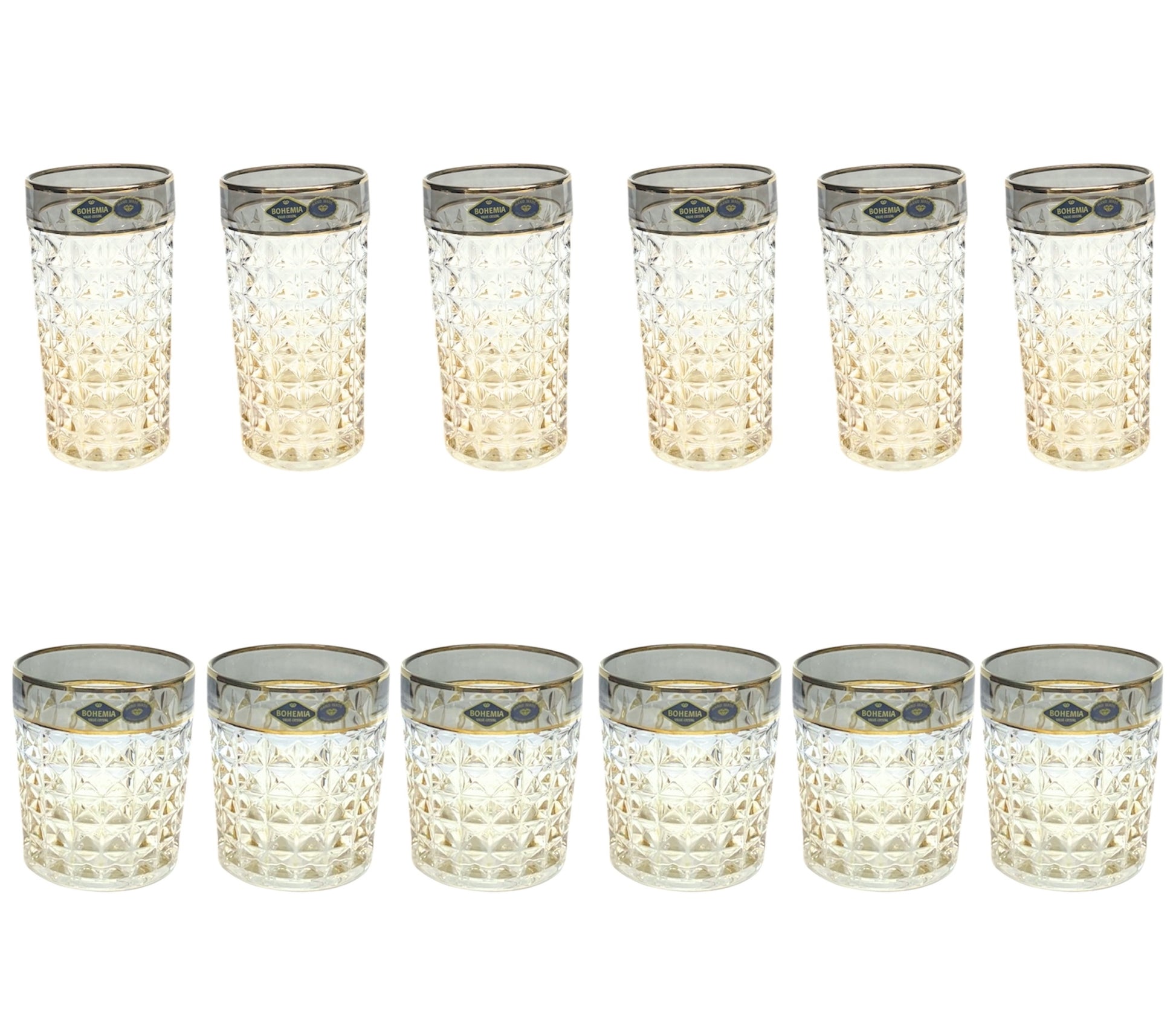 Bohemia Crystal Diamond Glass Set 12 Pieces